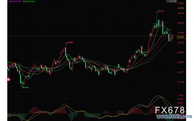 现货白银日线图北京时间5月6日10:59,现货白银报26.90美元/盎司