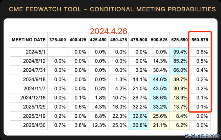 开年之时,在美联储降息预期和消费者价格指数 (CPI) 持续下降推动下,市场将通胀担忧束之高阁,但之后通胀数据不断上升,降息预期一再下降。CME FEDWATCH TOOL显示,目前市场仍然维持五月不降息的预期,甚至极少数人会预期继续加息。