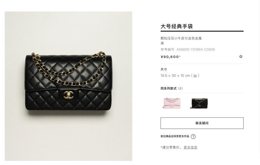 大号经典手袋的价格突破9万元大关,涨幅高达3600元;CF小号手袋的价格也水涨船高,由原先的77000元升至80800元,涨幅高达3800元,成为此次涨价潮中涨幅最大的单品;而19bag和leboy系列的涨幅则在2200元至2500元之间不等。